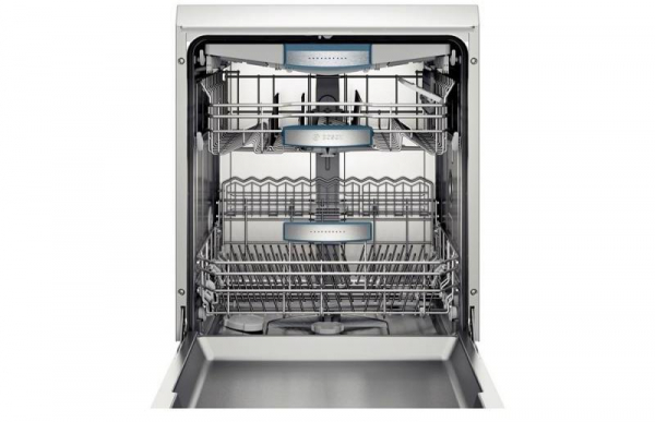 Данная модель является одной из лучших встраиваемых посудомоечных машин, оснащенная двойной защитой от протечек, к тому же она работает гораздо тише аналогов. Если вдруг возникает протечка, то автоматически блокируется подача воды. У направляющих предусмотрены подшипники, обеспечивающие плавное выдвижение корзин. Изнутри есть подсветка, имеется режим мытья детской посуды. Корзины при необходимости можно сложить, если есть необходимость вымыть что-либо габаритное.